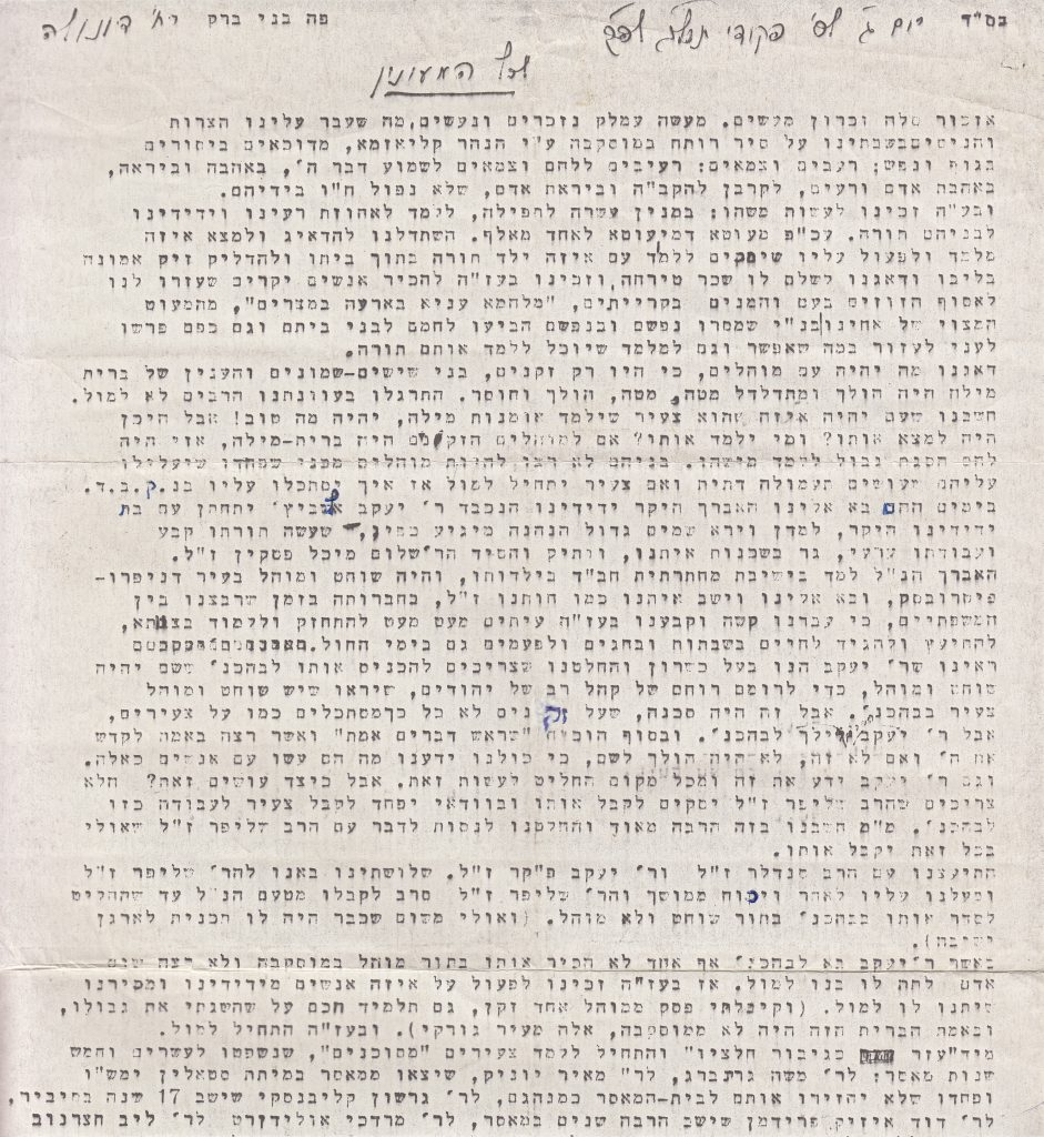 למען האוטנטיות של הדברים, העתקנו כאן את הנוסח הראשון של המכתב, כפי שנכתב בכתב ידו של ר' אהרן חזן עצמו.